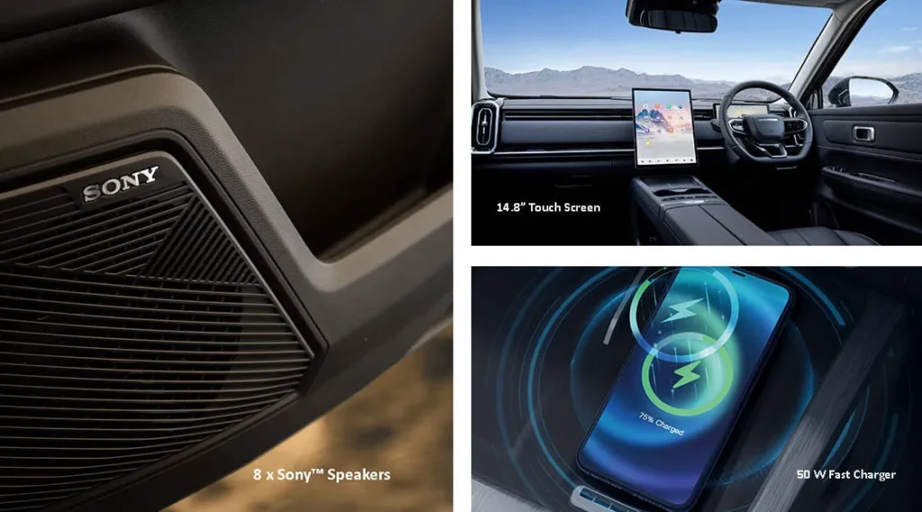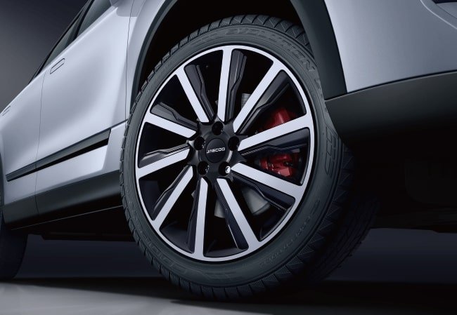 The full-width LED tail light bar stretches seamlessly across the rear, creating a bold and futuristic look. Its crystal-inspired lighting design delivers a sense of depth and precision, while the dynamic glow flows like a jumping wildfire, giving the JAECOO J7 SHS a striking presence both day and night.